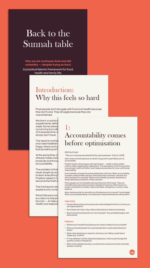 A simple Islamic framework for food, health and family life — when you weren’t raised living it and modern solutions aren’t working.
